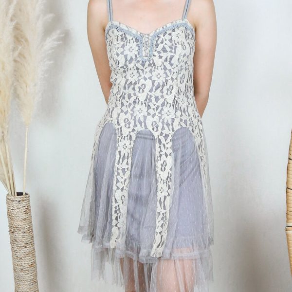 Printedscarf Lace Dress in Gre...