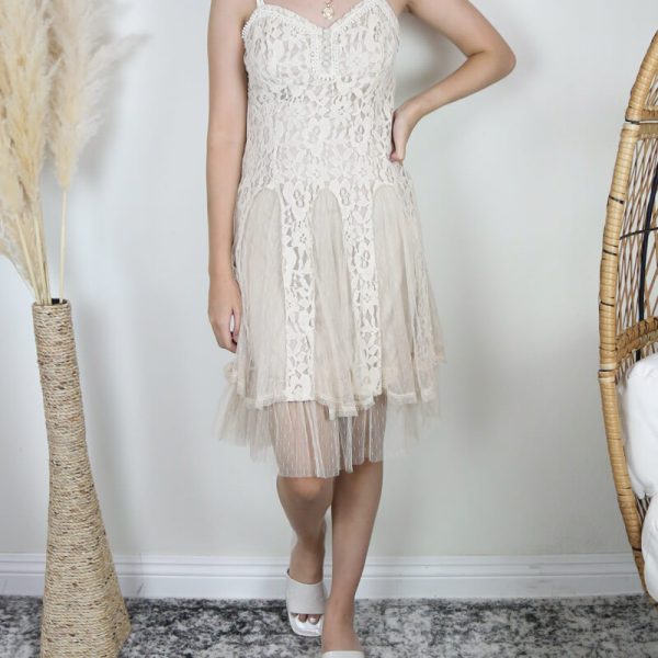 Printedscarf Lace Dress in Bei...