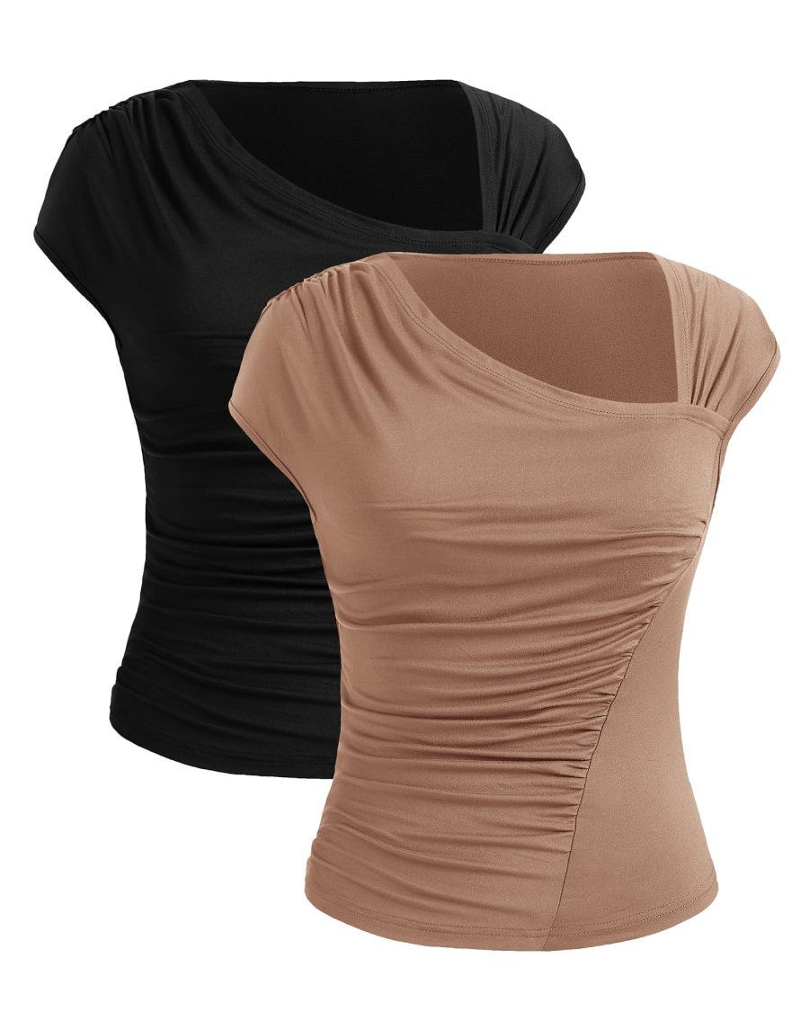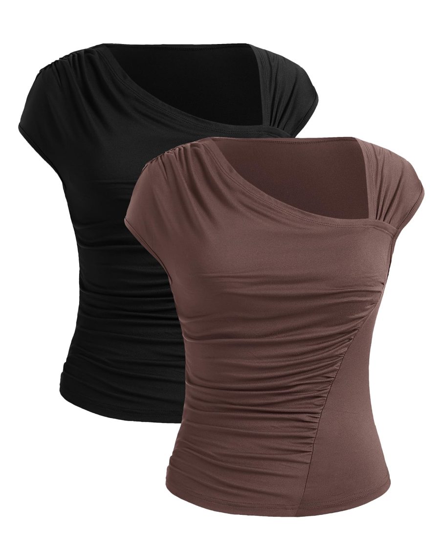 Design: Asymmetrical neckline design, hat sleeves fashion