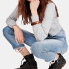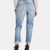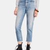 Step out in street-chic style with distressed jeans from Printedscarf in a fresh blue wash. These perfect pair of jeans feature a mid rise, zipper fly-button closure, belt loops, distressed details, and a ripped hem. Pair these jeans with your favorite top and some sandals or booties!