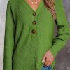 Half Button Raglan Sleeve V Neck Sweater quantity