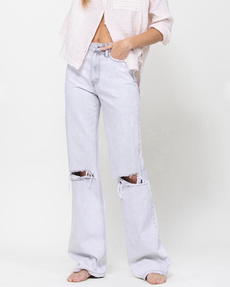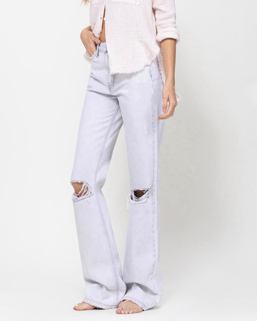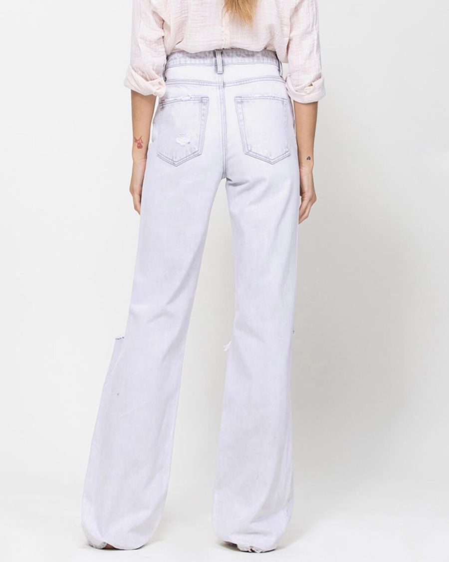 Complete your vintage outfit with a pair of these light wash flared jeans! These high waisted jeans feature a slim fit through the hip and thigh for a flattering fit.
