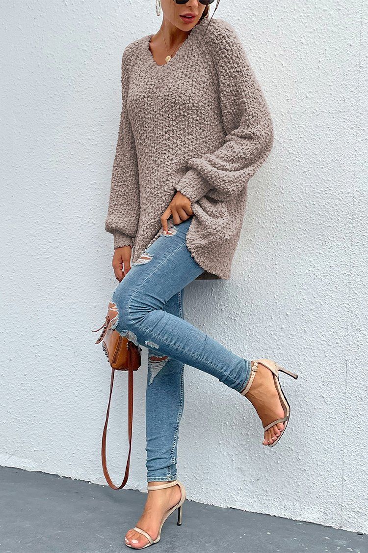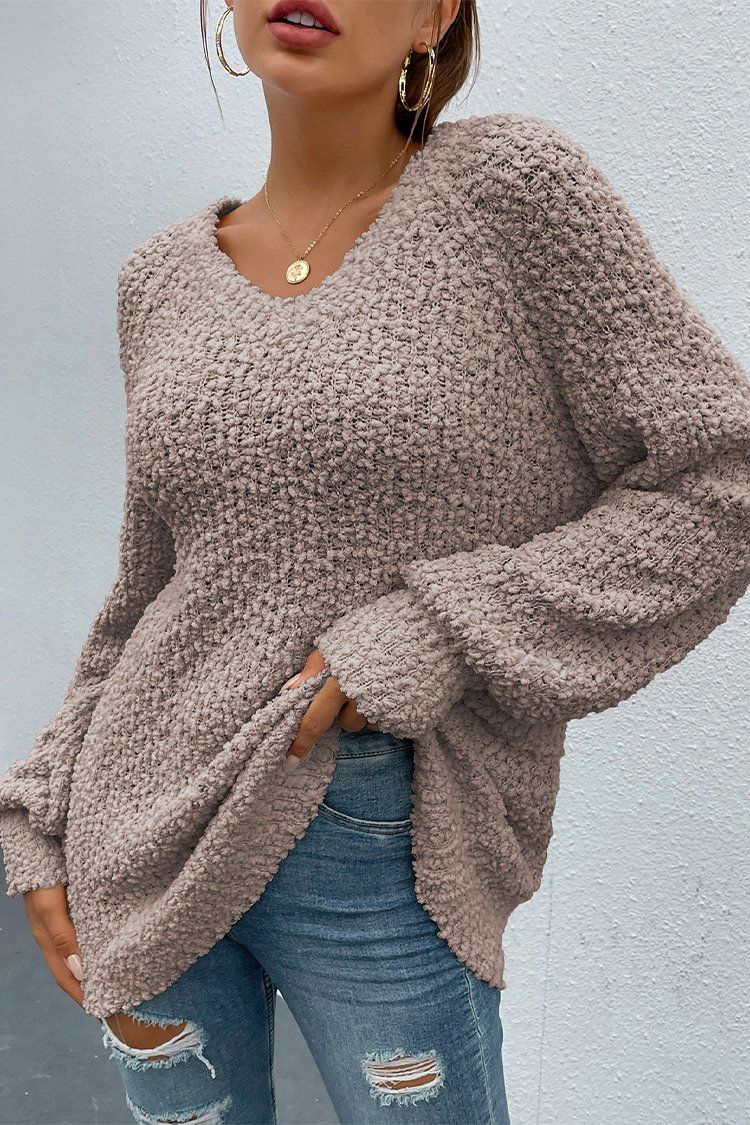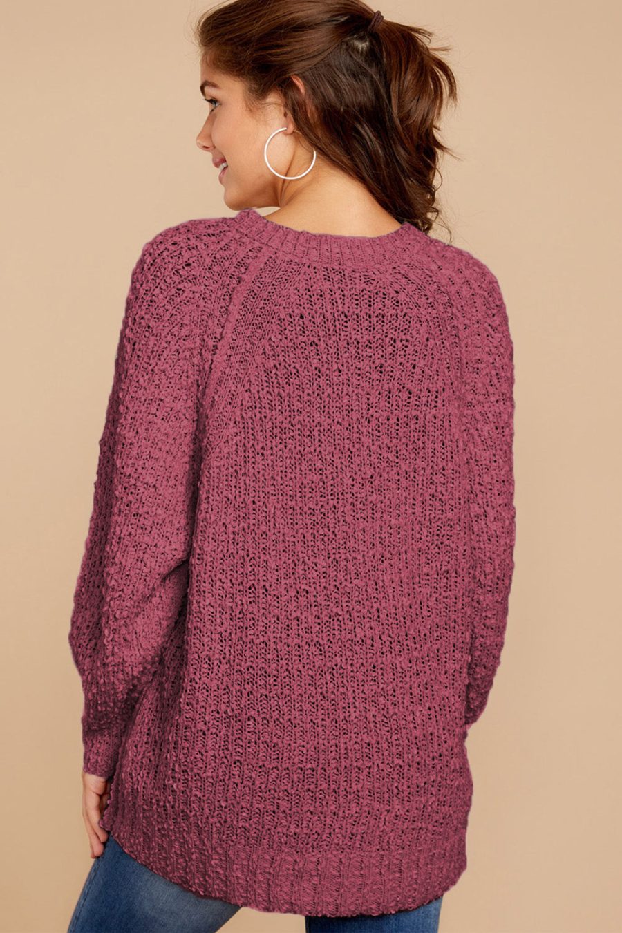 Popcorn Knit Raglan Sleeve Pullover Sweater quantity