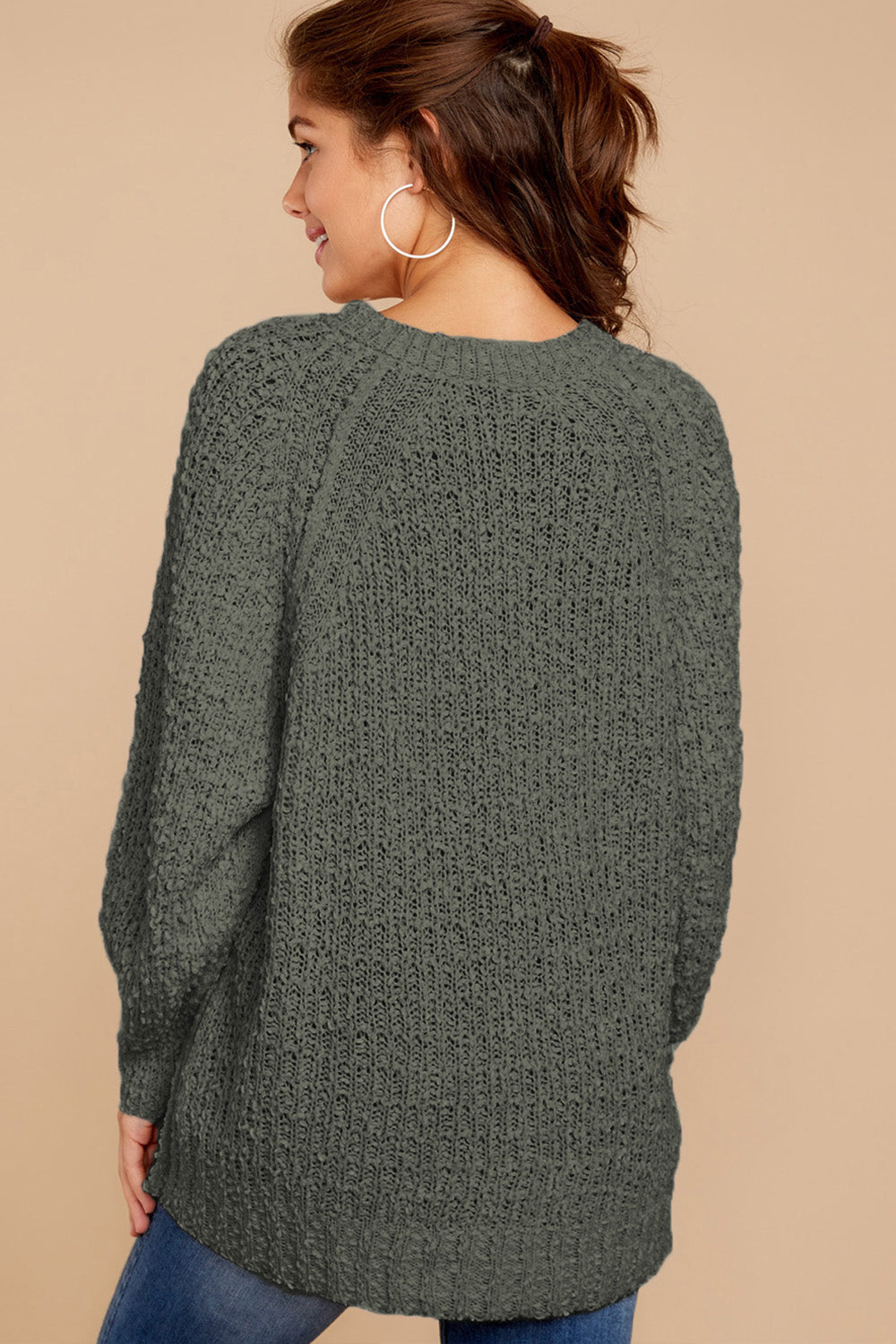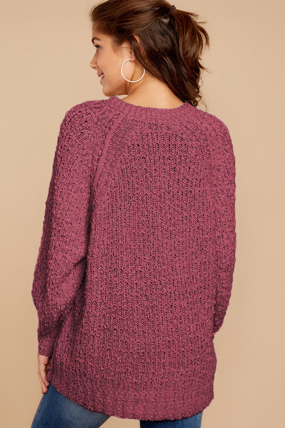 Popcorn Knit Raglan Sleeve Pullover Sweater