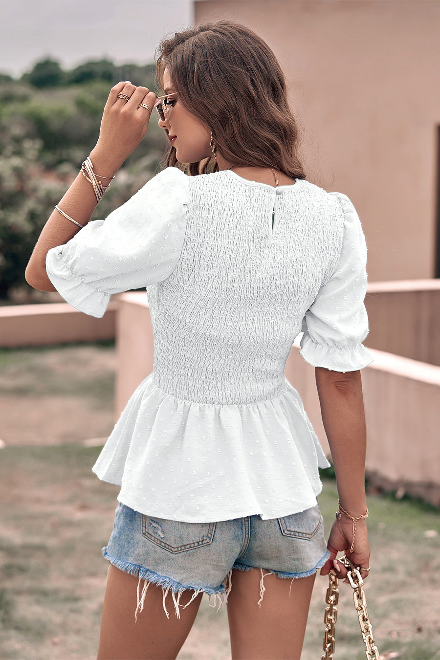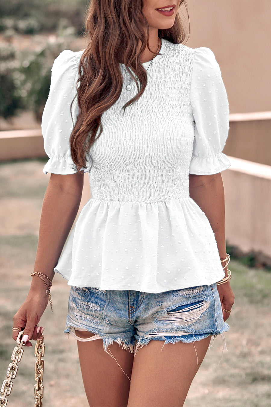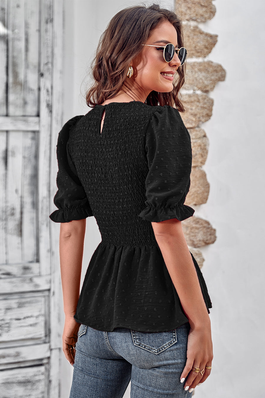 Puff Sleeve Smocked Tunic Ruffle Babydoll Top