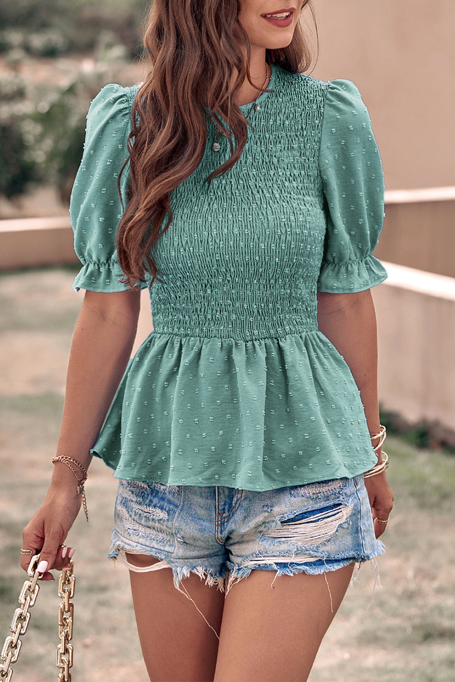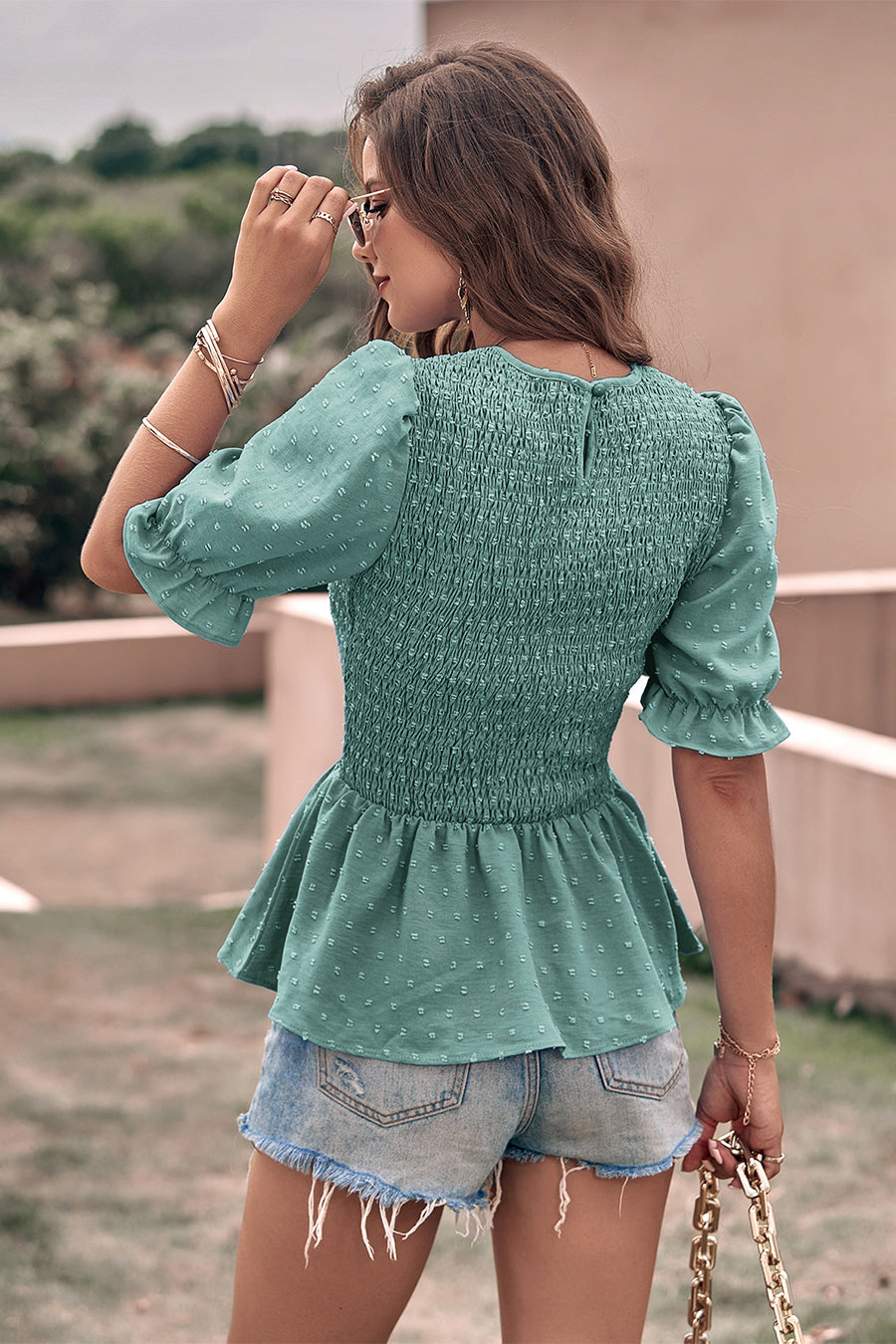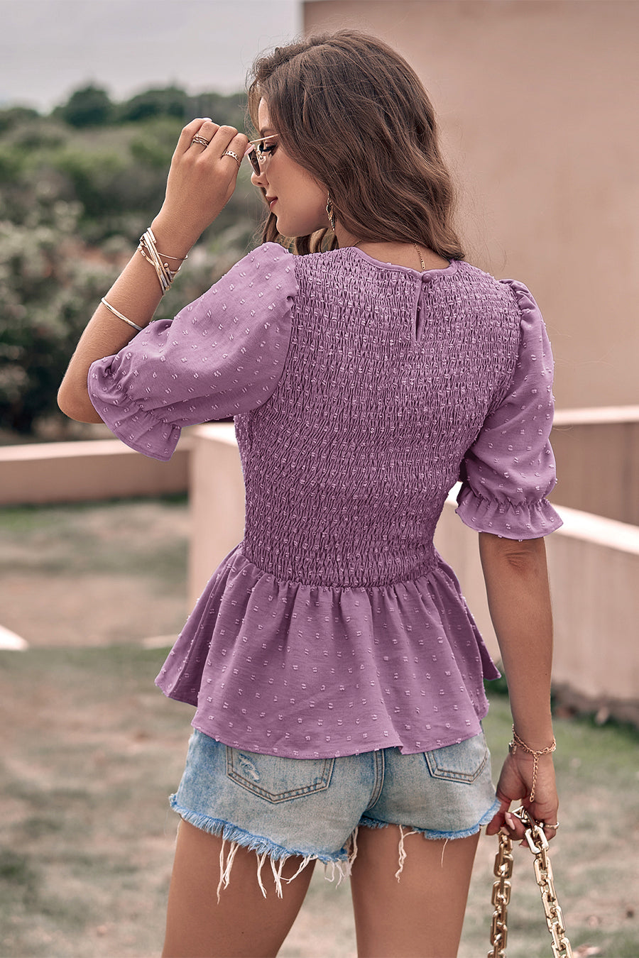 Puff Sleeve Smocked Tunic Ruffle Babydoll Top