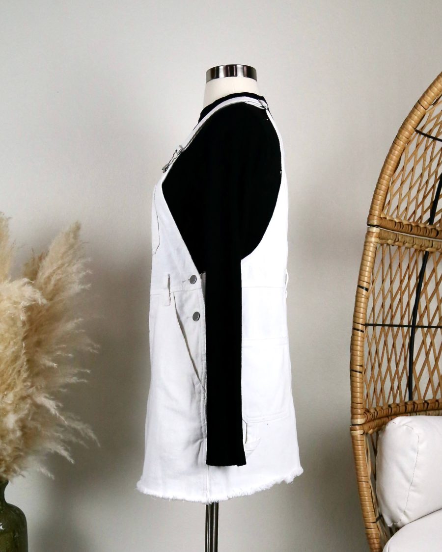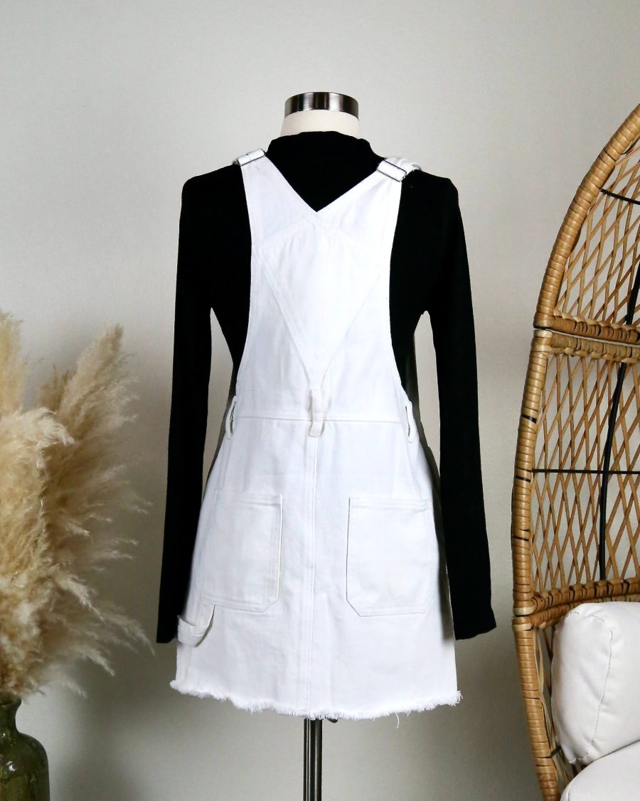 White Denim Bib Overall Dress