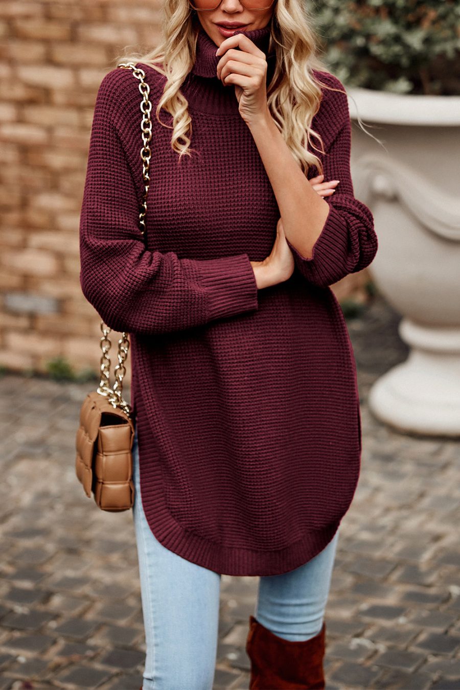 Irregular Hem Side Split Loose Pullover Turtleneck Sweater