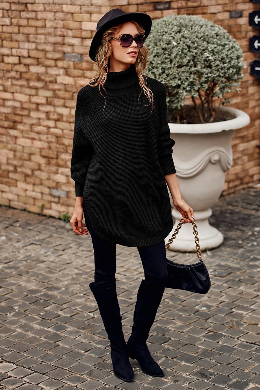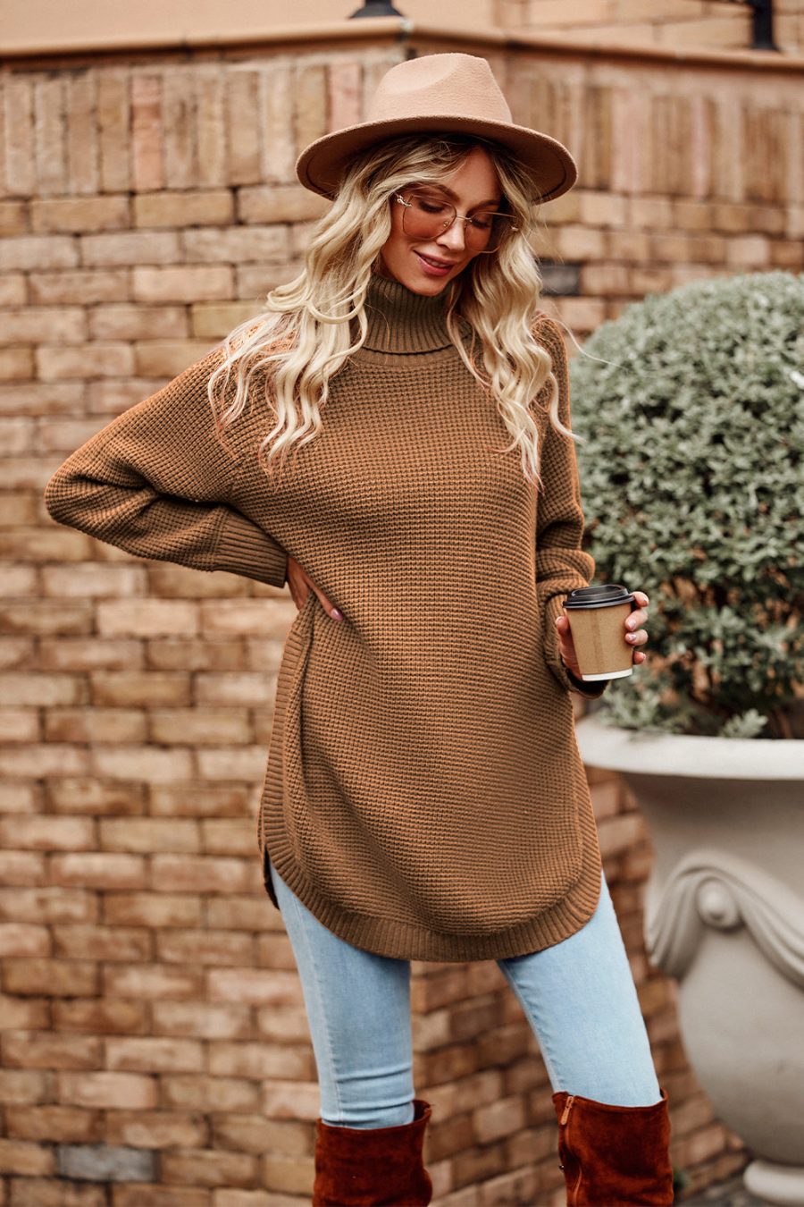 Irregular Hem Side Split Loose Pullover Turtleneck Sweater quantity