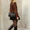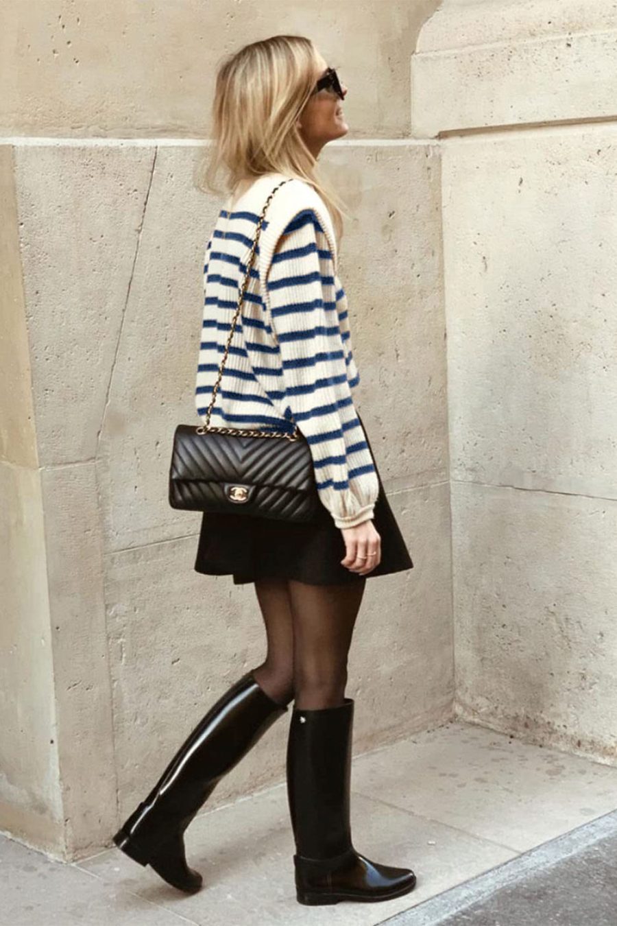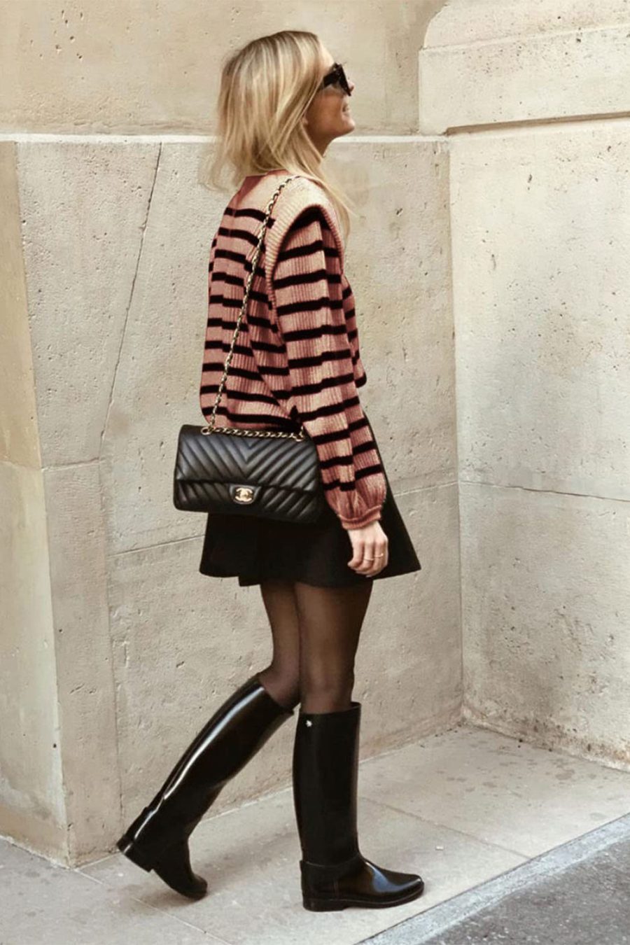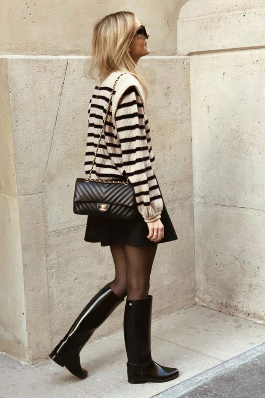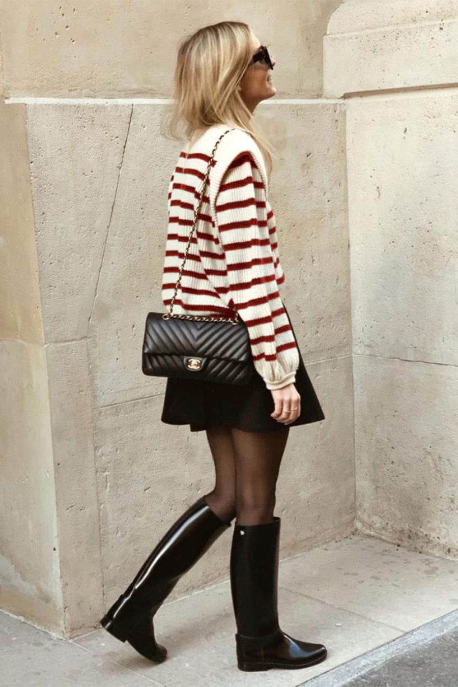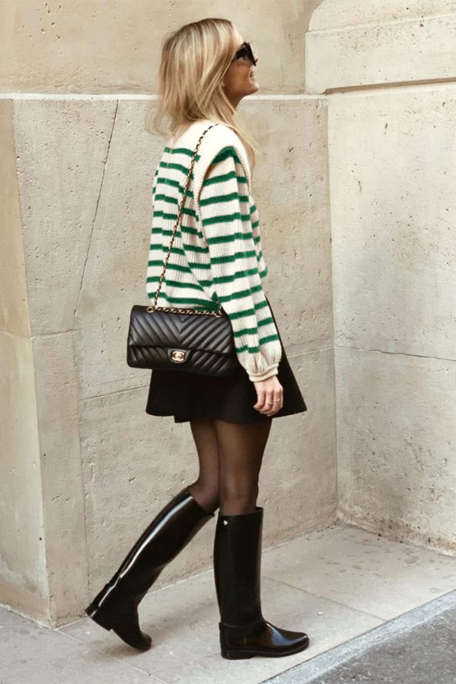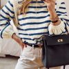 Long Lantern Sleeve Striped Ribbed Knit Pullover Top